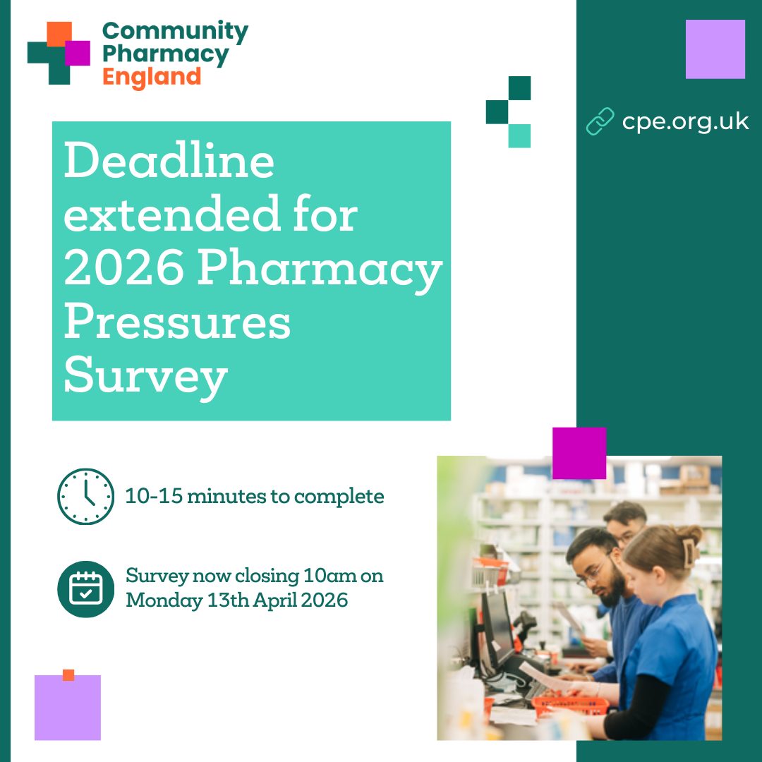 The deadline to respond to the 2026 Pharmacy Pressures Survey has been extended to 10am on Monday 13th April. Our annual survey monitoring the health of…